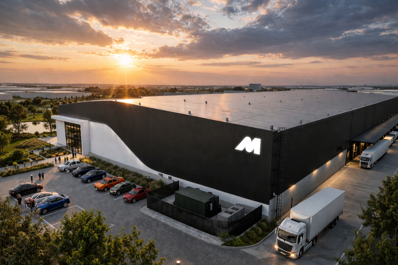 When scale matters, every detail counts. 6 Weaver at Midpoint is a large-format warehouse designed to support high-volume logistics, distribution, and industrial operations - without compromising on visibility or working environment. • 11,443 sqm total GLA (10,000 sqm warehouse, 1,443 sqm offices and 5,800 sqm yard) • 15 m height to eaves for vertical capacity • Rear and side loading, with dock levellers and on-grade access • Power availability up to 2.5 MVA • Sizeable yard for efficient vehicle movement • 3,000 kg/sqm load-bearing capacity The office component overlooks a landscaped dam, offering teams a more considered environment within a high-performance facility. With N1 highway exposure, your operations — and your brand — stay visible. Secure your position in one of Midrand’s most capable logistics facilities.